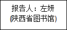 专题研讨部分邀请了三位征文作者,她们是陕西省图书馆左妍,电子科技大学图书馆张宇娥,南京图书馆苗雯雯。三位作者从实际工作的视角探讨图书馆视障服务、知识产权素养教育及公共图书馆内控建设问题,具有针对性和实际推广价值。该项议题的主持人为黑龙江大学信息管理学院教授周丽霞。