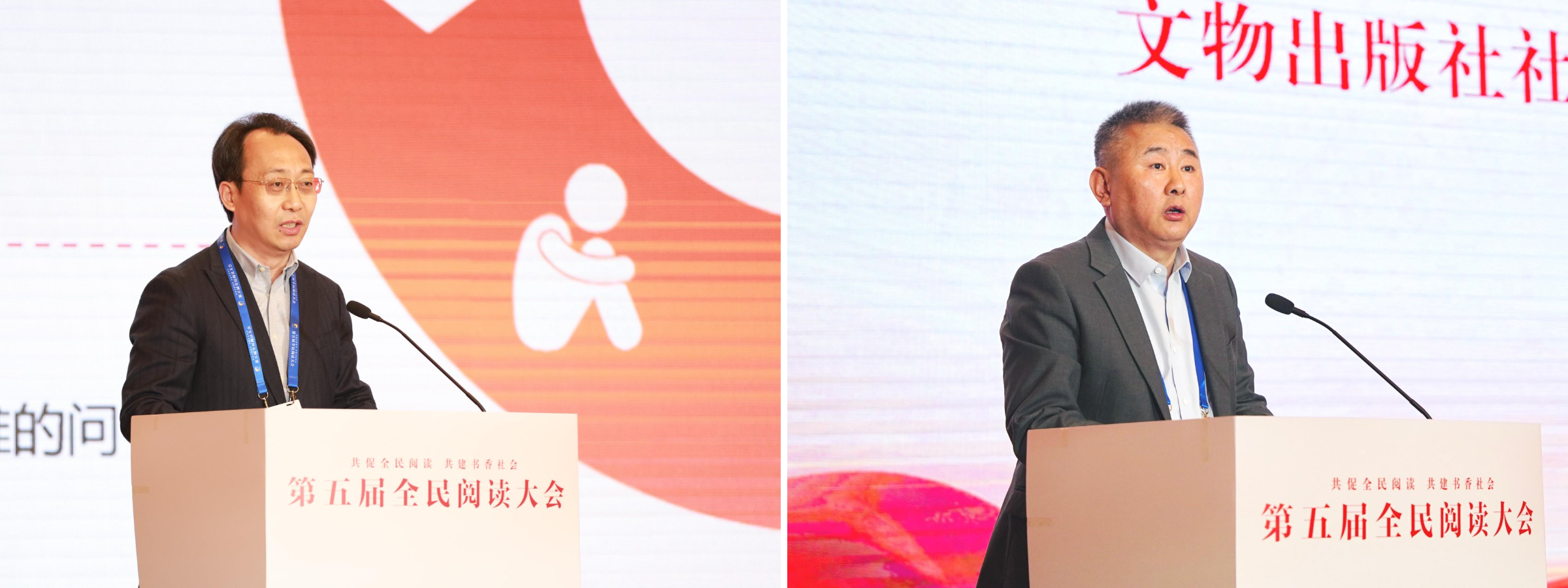 活动现场,陈樱,山西省文化和旅游厅党组成员、副厅长任永福与文物出版社社长金瑞国,南京图书馆馆长陈军,浙江省金华市委宣传部副部长陈晓峰,浙江图书馆馆长胡海荣,浙江古典文献研究会会长、浙江奥特莱斯广场有限公司董事长金亮共同发布全国馆社共荐优质书目暨优质图书资源全民阅读服务平台。陈军、金瑞国分别代表优质书目联建图书馆和出版单位发言。国家图书馆副馆长霍瑞娟主持发布仪式。