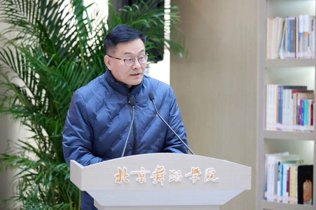 北京舞蹈学院党委书记巴图在致辞中提出希望图书馆充分发挥文化传承创新的重要作用、继续探索国际化发展路径、加强数字化智慧化建设、努力拓宽公共文化辐射范围等四点希望。北京舞蹈学院党委副书记、院长许锐回顾自己在求学和工作经历中与图书馆之间的记忆片段,并指出要以舒适的环境、完善的设施、珍贵的资源、优质的服务、多样的平台引导师生更好地“为人民而舞,为时代建功”。陈樱、巴图、许锐共同为图书馆开馆揭幕。