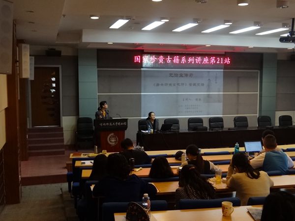 9月29日下午,由国家古籍保护中心、中国图书馆学会主办,首都师范大学图书馆承办的国家珍贵古籍系列讲座的第21站,无价宝传奇——《唐女郎鱼玄机诗》鉴藏史话在首都师范大学北一区图书馆报告厅精彩开讲。讲座特邀国家古籍保护中心张波博士主讲,首都师范大学图书馆副馆长屈南主持讲座。