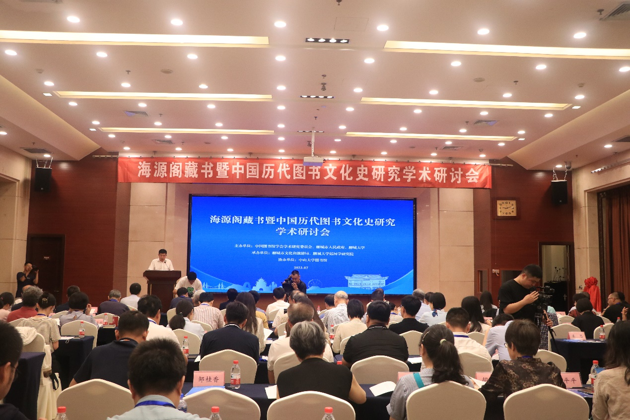 7月7日至10日,为纪念海源阁藏书楼建立183周年,海源阁藏书暨中国历代图书文化史研究学术研讨会在山东聊城举行。本次学术研讨会由中国图书馆学会学术研究委员会与聊城市人民政府、聊城大学主办,中山大学图书馆协办,聊城市文化和旅游局、聊城大学运河学研究院、聊城市图书馆承办。中国图书馆学会副理事长程焕文,聊城市委常委、宣传部部长、统战部部长柳庆发,聊城市人大常委会副主任孙凌云,聊城市政协副主席李涤尘,聊城大学党委常委、副校长白成林,中国图书馆学会学术研究委员会图书与图书馆史研究专业组主任王蕾、副主任徐雁、副主任顾烨青,著名学者、藏书家韦力,中国古籍保护协会古籍鉴定专业委员会副主任翁连溪,以及来自全国各地的海源阁研究、藏书文化研究、图书馆史志研究领域以及藏书家共计150余位专家学者参加了会议。