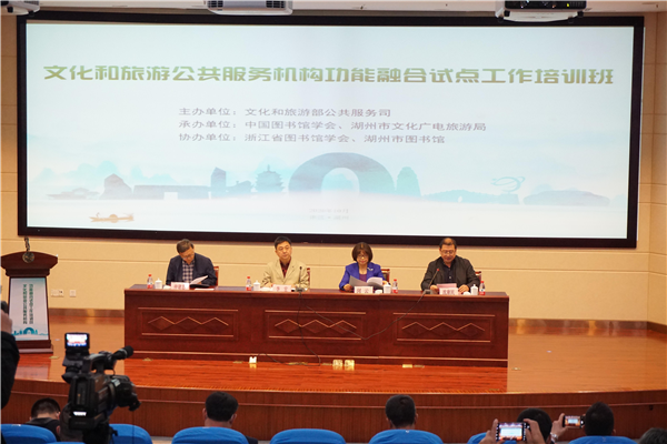 10月下旬,全国文化和旅游公共服务机构功能融合试点工作培训班在湖州市图书馆举办,配套推出的“书香氤氲绿水青山——湖州市图书馆界文旅融合实践巡礼”展览,生动展示了我市图书馆界文旅融合实践成果,彰显了文旅融合、美美与共的书香湖州。