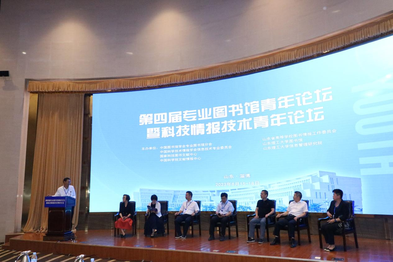 由中国图书馆学会专业图书馆分会、中国科学技术情报学会信息技术专业委员会、国家科技图书文献中心、中国科学院文献情报中心、山东省高等学校图书情报工作委员会、山东理工大学图书馆、山东理工大学信息管理研究院共同举办的“第四届专业图书馆青年论坛暨科技情报技术青年论坛”于2023年8月15-18日在山东淄博召开。本次会议聚焦“启迪、探索、突破:新发展格局下图书情报事业的青年力量”主题,交流和探讨青年人才在事业传承与发展中的作用和任务。在为期两天的交流时间里,会议邀请了54个单位的98位发言人做报告,通过特邀主旨报告、圆桌论坛、青年论坛、快闪发言和青年专家专题报告等交流形式,围绕人工智能、语义智能、科技文本挖掘、AIGC、战略情报研究、科技评估、语义评价、智慧服务等等时代议题,探讨青年人才在科学研究、学术探索、实践创新、技术前沿等方面的最新成果与积极实践。来自全国70余所高校、情报院所、科研机构、企业的近180余位专家学者齐聚淄博,发出青年声音,展示青年风貌。