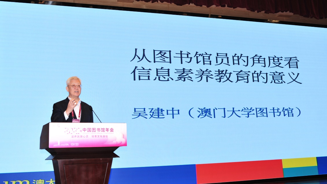 中国图书馆学会学术研究委员会名誉主任、澳门大学图书馆馆长吴建中教授作特邀报告。