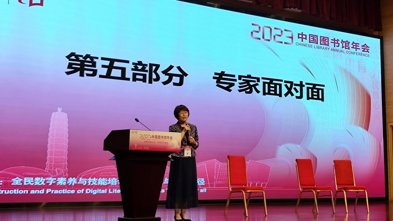 2023年中国图书馆年会“全民数字素养与技能培训模式构建与实践路径”主题论坛于9月15日上午在郑州市国际会展中心顺利召开。本论坛由国家级全民数字素养与技能培训基地(武汉大学)、教育部图书馆学专业教学指导委员会、中国图书馆学会学术研究委员会、北京大学信息管理系、武汉大学信息管理学院、武汉大学图书馆主办,《图书馆杂志》《图书与情报》协办。长期从事信息素养教育研究与实践的专家与同行齐聚一堂,共同探讨数字素养教育与技能培训模式等相关问题。
