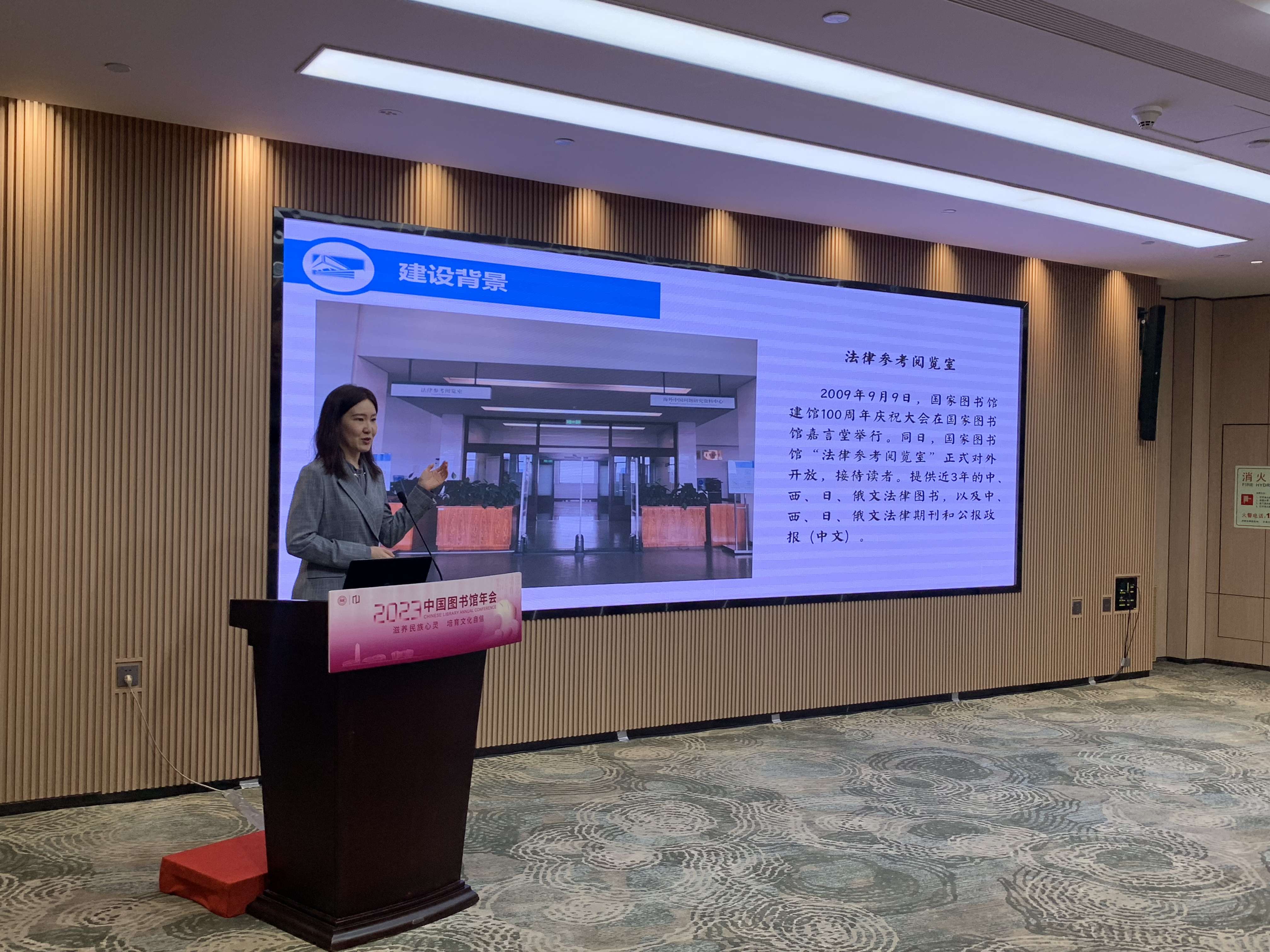 国家图书馆立法和决策服务部薛雪的发言阐述了依托国家图书馆宏富馆藏文献建设法律馆的重要意义,并从空间改造、馆藏资源组织及揭示、数字资源建设、普法宣传阵地等几方面详细介绍了法律馆的建设及服务情况,并就未来将国家图书馆法律馆建设成为中外文法律文献收藏中心、咨询与文献服务中心、中外法律图书馆交流中心和全民普法阵地提出了展望。国家图书馆法律馆的建设,是全面依法治国背景下加强法治文化建设的创新实践,为立法和决策咨询服务的发展指明了新方向。